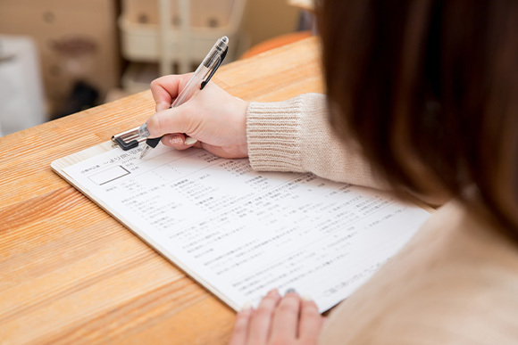 来院していただきましたら、予診票を記入していただきます。